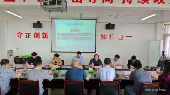 4月18日上午,东华理工大学机械与电子工程学院一行,在院长汪志成教授的带领下,来九游体育开展工作交流。东华理工大学机械与电子工程学院副院长陈志新博士、电工电子实验中心主任曹杰教授、自动化系资深教师徐猛华、机械工程系骨干教师万智辉等一同参与交流。九游体育官方网站在竞知楼904会议室举行了工作交流会。学院领导班子成员及相关科室负责人共同出席交流会。