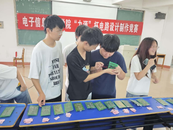 经测评,在电路制作赛,A2314温智豪获一等奖;A2313张玉峰、A2313陈文钦获二等奖;A2313张美玲、邹照、冯鑫获三等奖。赛前24小时,参赛选手利用经验或设计软件,完成设计图。5月20日,所有选手在电子信息实验楼402实验室,集中进行焊接调试。