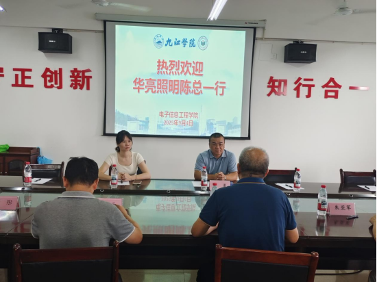 9月4日上午,华亮照明科技有限公司总经理陈勇率队来访九游体育,就推进产学研深度融合进行洽谈交流。九游体育院长邓长寿、副院长罗东云、副书记朱亚军及教师代表舒彤、刘理等一同在竞知楼904会议室热情接待了来宾。