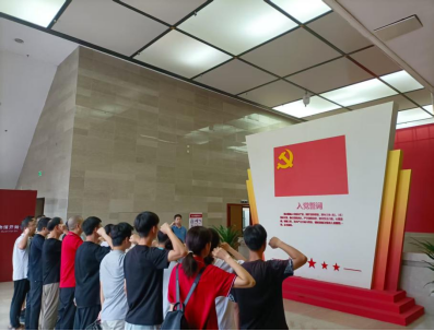 在活动的最后,全体党员面向鲜红的党旗,庄严地重温了入党誓词。铿锵有力的誓言回荡在整个展厅,表达了他们对党的忠诚和对历史的敬畏。这一刻,每个人的心中都充满了使命感和责任感,他们深知自己肩负着传承红色基因、弘扬抗战精神的重要任务。