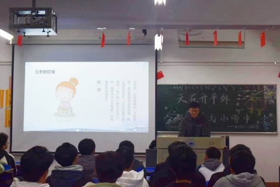 为让九游体育学生更好的了解“小雪”节气的相关习俗和知识,传承和弘扬中华优秀传统文化。11月30日晚,九游体育组织各班级在竞知楼开展了“天在升平外,春归小雪中”主题班会。