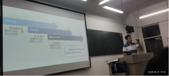 3月31日周日晚点名,根据保卫处的工作部署,九游体育充分利用晚点名,在全院范围,再次深入开展电信网络诈骗宣传教育。