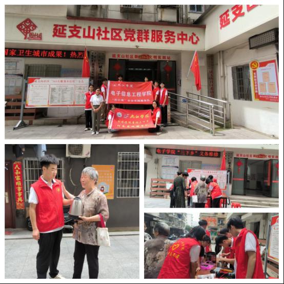 6月26日,服务队在延支山社区活动中心设立“家电义诊”便民服务点。电子队员充分发挥技术专长,化身“家电医生”,为老年居民提供技术服务。他们运用万用表精准定位电水壶、电饭煲等小家电的电路故障,通过焊接松动元件、更换老化零件,让“罢工”电器重获新生。维修服务之余,队员们同步开设“家电维护知识讲座”,演示除垢保养、电路防潮等实用技巧,指导居民科学延长家电使用寿命。当看到老年居民手持修复家电展露笑颜时,队员们既感受到学以致用的实践喜悦,更深刻领悟到用专业技能服务民生需求的价值内涵。