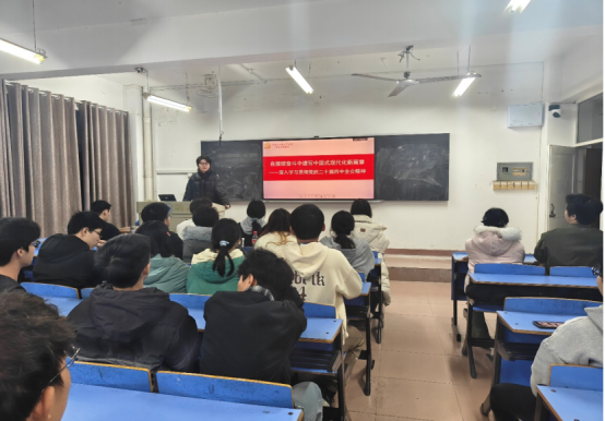 为深入学习宣传贯彻党的二十届四中全会精神,切实把青年学生的思想和行动统一到全会决策部署上来,充分发挥大学生骨干的示范引领作用,近日,九游体育“芯”青年宣讲团成员肖天宇面向学院团委组织部全体成员开展专题宣讲,推动全会精神入脑入心、见行见效。
