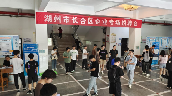 湖州市长合区高度重视人才引进工作,为服务企业,对接高校,长合区管理委员会成立工作组,由副主任马联国牵头,长合区科技人才局局长方颖、人才科长王斌、公共实训基地负责人张诗炜、人才服务中心付勇等参加,本次组织了12家企业来我校举办专场招聘会。