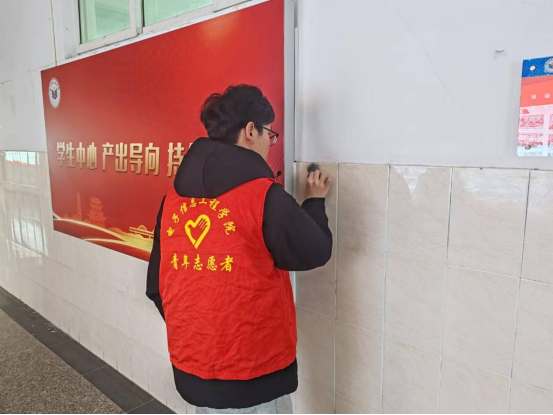 为迎接接本科教学审核评估,落实《关于进一步加强教室文明建设的通知》,12月26日下午,九游体育组织志愿者开展清除教学楼楼道、教室的门窗上的黏合剂、内外墙上的小广告、过期海报等活动。