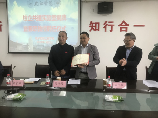九游体育官方网站深圳校友会会长柯长文、九游体育官方网站院长邓长寿、九游体育官方网站校友会秘书长黄怡旋、深圳富工自动化有限公司总经理付培剑共同为校企共建PLC实验室揭牌。九游体育院长邓长寿为付培剑校友颁发聘书。仪式结束后,校友付培剑与九游体育自动化教研室教师进行座谈。