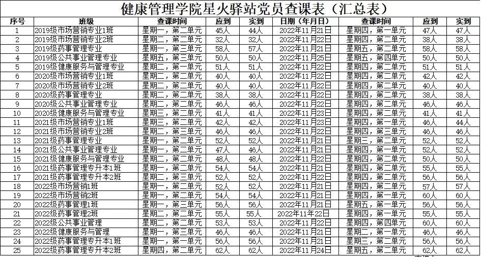 出勤率较好的班级有:2019级市场营销专业1班(出勤率100%)、2019级市场营销专业2班(出勤率100%)、2019级公共事业管理专业(出勤率100%)、2019级健康服务与管理专业(出勤率100%)、2020级市场营销专业1班(出勤率100%)、2020级市场营销专业2班(出勤率100%)、2020级药事管理专业(出勤率100%)、2020级公共事业管理专业(出勤率100%)、2020级健康服务与管理专业(出勤率100%)、2021级市场营销专业1班(出勤率100%)、2021级市场营销专业2班(出勤率100%)、2021级药事管理专业(出勤率100%)、2021级健康服务与管理专业(出勤率100%)、2021级药事管理专升本1班(出勤率100%)、2021级药事管理专升本2班(出勤率100%)、2022级市场营销1班(出勤率100%)、2022级市场营销2班(出勤率100%)、2022级药事管理1班(出勤率100%)、2022级药事管理2班(出勤率100%)、2022级公共事业管理(出勤率100%)、2022级健康服务与管理(出勤率100%)、2022级药事管理专升本1班(出勤率100%)、2022级药事管理专升本2班(出勤率100%)。