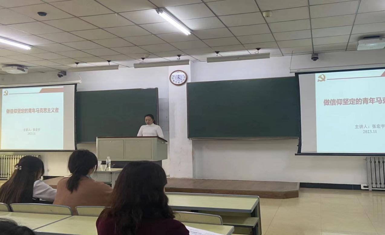 2023年11月2日,beat365中文唯一官网党校第九期学生入党积极分子培训班在行知楼2204教室开展第二讲,邀请到青年马克思主义者培养学院专职副院长张宏宇做题为《做信仰坚定的青年马克思主义者》的专题党课。