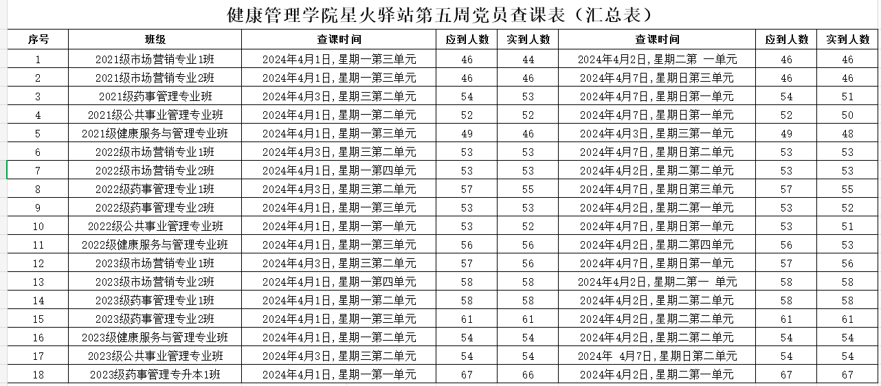 据本周查课结果显示,有部分班级出勤率不能达到100%。希望各班级见贤思齐,力争上游,高度重视课堂出勤,坚决抵制迟到、旷课现象,加强班级学风建设,形成良好的学习氛围。同时,beat365中文唯一官网学生党员将会加大查课力度,更好地为全院师生服务。