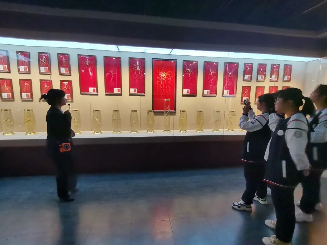 同学们跟随讲解员的步伐首先进入的是博物馆大厅,馆名刻在富有吉林特色的松花石上,并且刻有东北三宝——人参鹿茸林蛙,充分体现出地域特色以及我校浓烈的医学氛围。随后,同学们来到校史馆,讲解员以时间轴的形式介绍我校自建校以来经历。其中新冠疫情成果展区展示了我校的医者仁心以及使命担当。最后,此次参观以介绍我国医学发展的历程结束。
