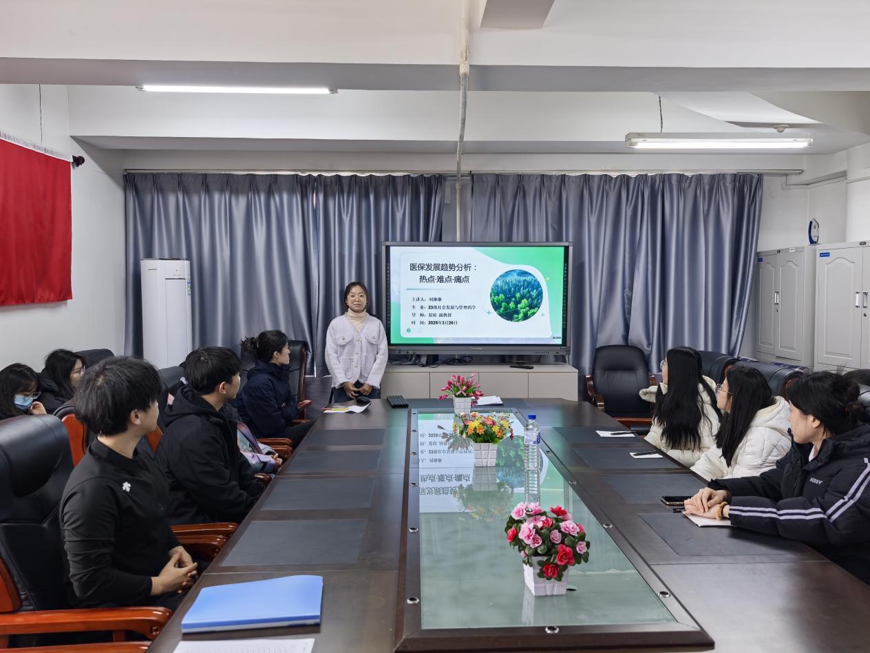 2023级社会发展与管理药学硕士研究生刘琳琳同学以《医保发展趋势分析:热点•难点•痛点》为主题汇报。目前我国医保覆盖率达95%以上,DRG/DIP支付改革全面推开,大病自付超50%、异地就医结算成功率仅80%、罕见病保障缺位等问题突出。门诊共济、创新药准入和"互联网+医保"成改革热点。