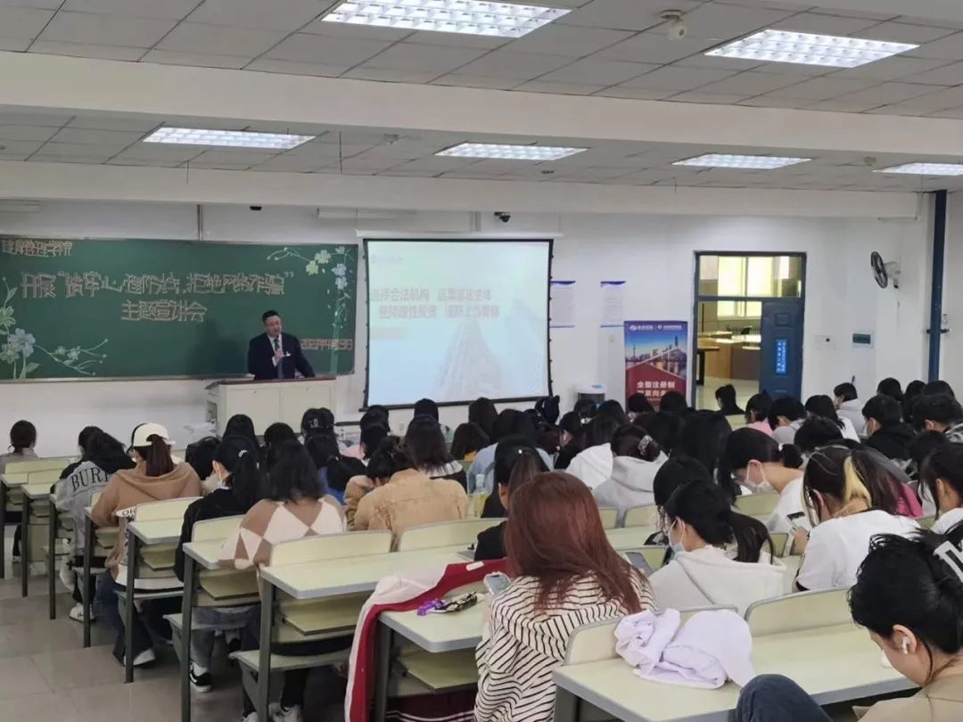 为培养学生防范意识,警惕网络诈骗手段,提高防范能力,4月19日下午,beat365中文唯一官网在致知楼1322教室召开了“筑牢心理防线,拒绝网络诈骗”主题宣讲会。beat365中文唯一官网学生工作办公室辅导员张路,东北证券国家级投教基地投教专员、投教专业讲师代城城,东北证券长春湖西路营业部财富总监孙振华等出席了本次活动。
