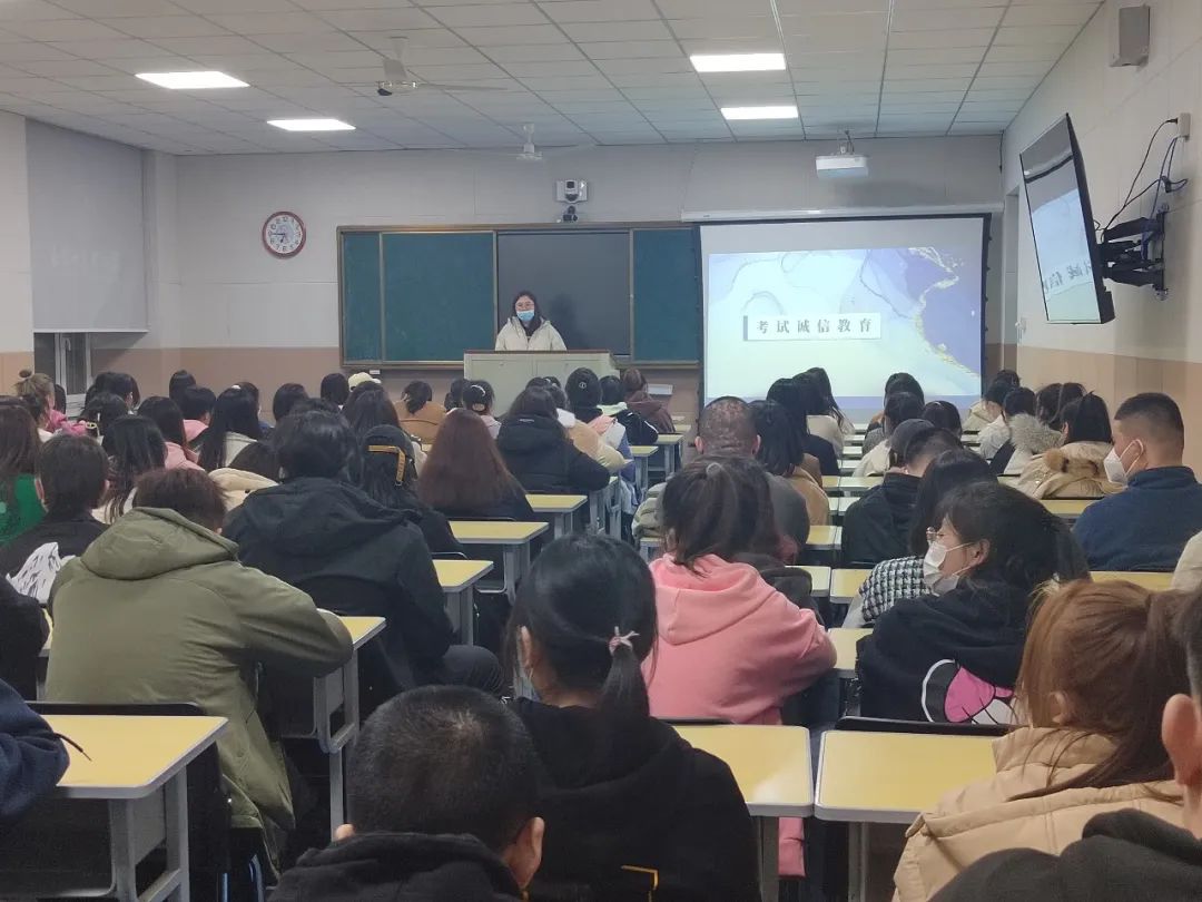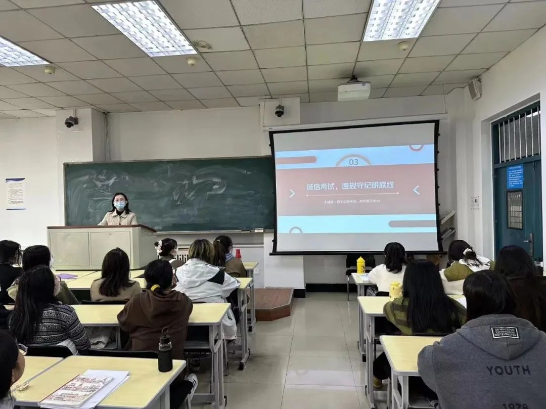 在班会上,各位辅导员从诚信考试的意义、考试规则、考场纪律、考试注意事项及考前准备等方面进行讲解,带领学生系统学习了《国家教育考试违规处理办法》、《普通高等学校学生管理规定》等重要法律法规。同时,辅导员们关心问候了同学们的身心状况,督促同学们科学备考,合理缓解备考压力。