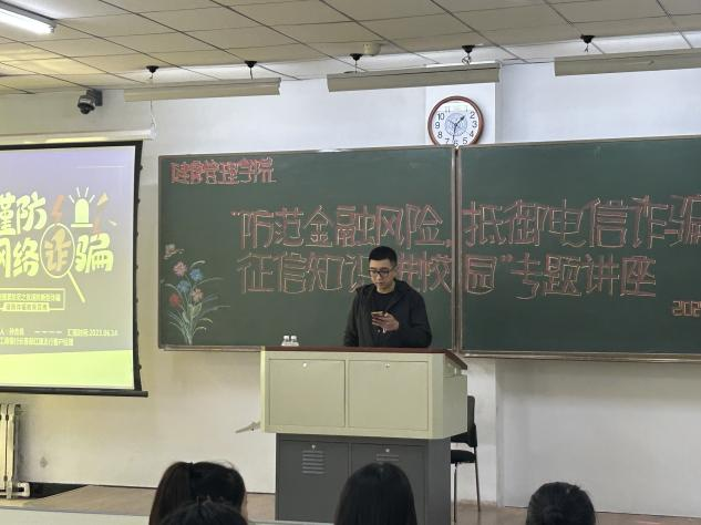 随着信息技术高速发展,信息获取方式呈现出高效便捷趋势的同时,也给电信诈骗提供了行骗的温床。诈骗形式多种多样、防不胜防,逐渐成为社会发展的不稳定因素。为提升学生反诈意识,保障大学生合法权益,beat365中文唯一官网于2023年6月14日下午,在2204教室开展题为“防范金融风险,抵御电信网络诈骗,征信知识进校园”主题讲座。