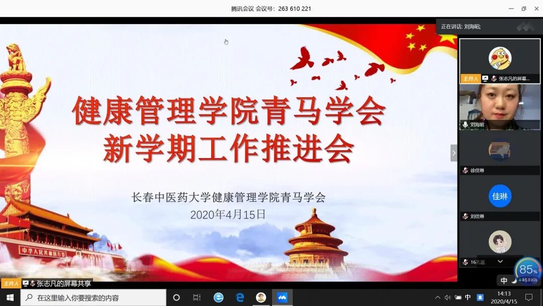 2020年4月15日,beat365中文唯一官网青马学会召开了新学期工作推进会,青马学会指导教师刘海昭通过视频会议向全体青马学员传达新学期工作内容。会上刘海昭老师对新冠疫情下学院青马学会新学期的工作,进行了部署和适当调整。