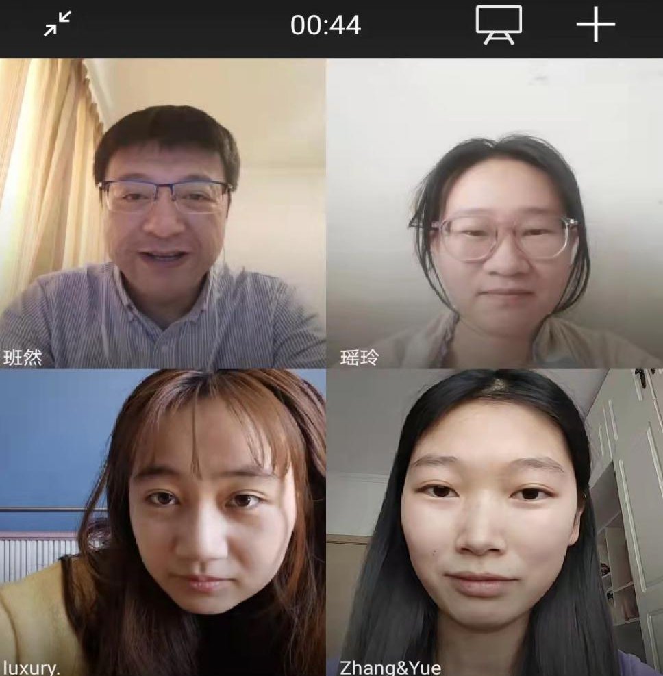 2022年3月30日,我们与班然老师在微信上进行了见面,班老师依旧那么和蔼,老师悉心指导,让我们明白了虽然疫情期间,但是我们也不能放纵自己,应该好好听网课,好好学习,考研激烈,让我们有自己的规划、目标。每一次与老师交流都使我受益良多。