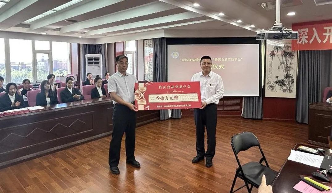 赵国安董事长表示,特医食品是一家研发和生产功能性食品和药品的生物科技公司,致力于与大学合作,设立专属的“科研基金”,用于科研成果转化,使科研成果可以通过企业这个平台能够服务与社会;专属的“奖助学金”,鼓励同学们能够勤奋学习、自强不息,用优异的成绩回馈社会。