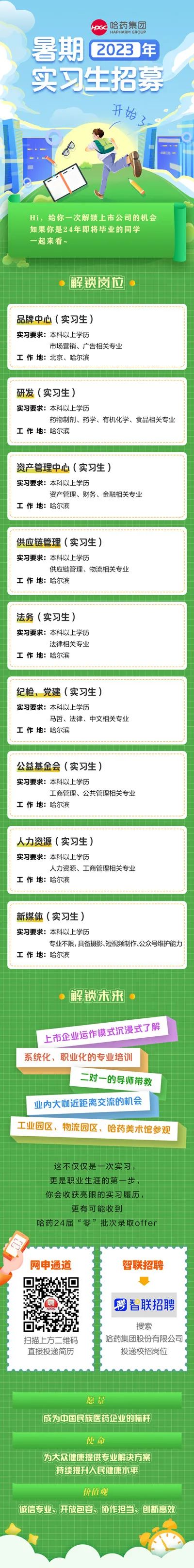 【菁智汇吉 生根筑梦】哈药集团暑期实习生招募