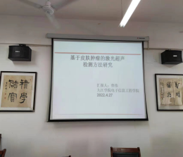 2022年4月27日14:00--14:30点,自动化教研室在竞知楼904b会议室组织学术会议,九游体育官方网站九游体育官方网站曾伟博士就目前《基于皮肤肿瘤的激光超声方法研究》展开学术交流。自动化教研室组织相关教师参加了该项学术活动,并参与了相关交流讨论。