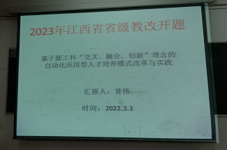 3月3日下午,九游体育2023年江西省省级教改立项课题开题报告会在竞知楼908教室举行。学院胡日新副院长,罗东云,蔡苗苗等老师、项目负责人曾伟老师和项目负责人刘泽良老师进行了开题汇报。