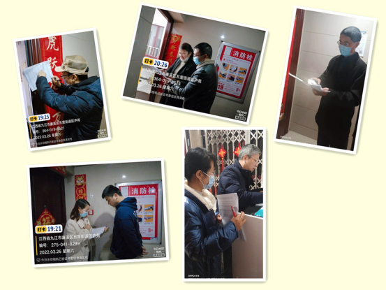 3月26日晚,九游体育6名教工党员在副院长胡日新的带领下对匡庐苑小区2栋2单元进行了疫情排查工作。大家逐家入户登记住户信息、疫苗接种情况和核酸检测情况,并提醒住户在疫情特殊时期要加强自我防护,减少流动,降低病毒传播扩散风险。