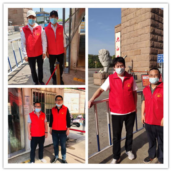 为全力做好新冠疫情防控工作,充分发挥党员的先锋模范作用,按照学校疫情防控的整体部署,4月9日-11日,九游体育院长邓长寿、党委书记汪傧、副书记张堑、副院长胡日新和杨长春分别带领部分党员同志在学校西大门积极参与学校的值班工作,协助询问排查车辆和出入人员的行程码。