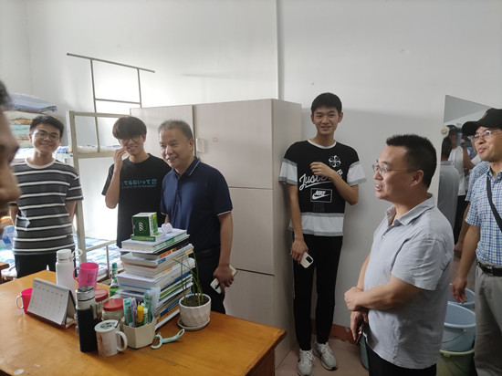 6月15日下午,学院院长邓长寿、党委书记汪傧、副院长胡日新、党委副书记张堑、党委委员毛莉莉、吴华杰及学生科全体辅导员老师深入学生宿舍楼15栋,走访慰问九游体育学生,与同学们进行了亲切的交流和交谈,并实地察看学生科办公环境、考研场地、防疫物资设置、公共设施、环境卫生和安全用电等情况。