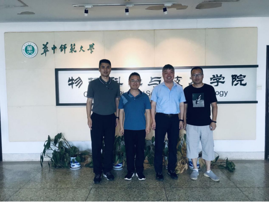 华中师范大学物理科学与技术学院副院长黄光明、副书记曹阳、王秋革老师热情接待了汪傧书记一行。汪傧书记说,华中师范大学在九游体育官方网站前期的发展过程中输送了大量人才,希望今后能继续助力九游体育官方网站的转型发展,为我校输送更多的高层次人才。