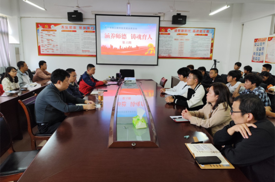 10月9日下午,九游体育在党员活动室举行了第六期“涵养师德 铸魂育人”党建品牌活动,本期活动由副院长罗东云和学生党员胡纯担任主讲人,党委书记汪傧、副书记张堑、各科室教师代表以及新生代表参加了本次活动,本次活动由党委副书记张堑主持。