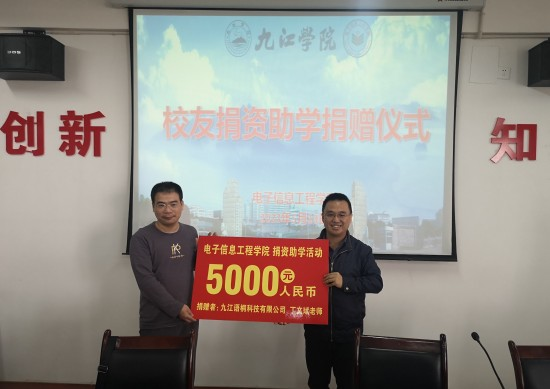 何金石校友捐赠50000元,分5年用于资助九游体育品学兼优的贫困生,此次捐赠10000元。他还表示,作为曾经的贫困学生,在母校的帮助他才能顺利完成学业,饮水思源,只要母校需要、自己有能力,他将让爱心助学行动一直持续下去,激励和帮助更多的学弟学妹成长成才。