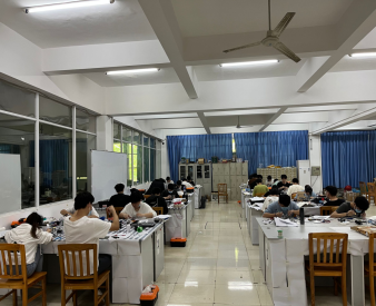 2022年5月21日上午8点整,江西省大学生电子专题设计赛九游体育官方网站赛场内,30名同学正热火朝天的进行着电路的设计和焊接比赛。