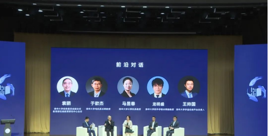 清华大学校务委员会副主任、教育部在线教育研究中心主任袁驷,清华大学电机系长聘教授于歆杰,清华大学计算机系教授马昱春,清华大学软件学院长聘副教授龙明盛在圆桌论坛环节围绕人工智能塑造未来教育为主题,分享各自真知灼见。