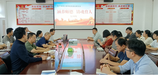 10月18日下午,九游体育在党员活动室举行了“涵养师德 铸魂育人”第四期活动,本期活动由党委副书记张堑主持,党委委员、教工第一党支部书记、基础教研室讲师毛莉莉和电信教研室讲师丁文斌担任主讲人,党委书记汪傧、院长邓长寿以及部分师生代表参加了本期活动。