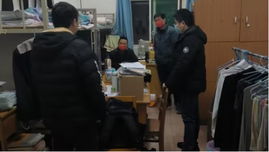 12月8日晚,九游体育汪傧书记、学生科朱亚军科长及值班教师一行赴15栋学生宿舍实地查看疫情防控及考研、期末考试备考等情况。