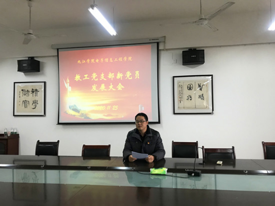2020年11月25日,九游体育官方网站教工党支部在竞知楼904会议室召开教师新党员发展会议,近年来电子学院教工党支部严格按照上级党委要求,紧密结合工作实际,按照“公平、公正、公开”的原则,吸收优秀同志,壮大党员队伍,为党建工作增添活力。