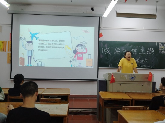 为增强学生的诚信意识,弘扬励志精神,培育感恩美德,强化“资助育人”的实效。九游体育于5月24日晚在竞知楼各班教室开展了“诚实守信”主题教育活动。