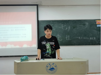 在铿锵嘹亮的团歌《光荣啊,中国共青团》后,活动正式开始,各班团支书先讲解党史发展脉络,让同学们共同聆听党的光辉岁月。随后,团支部成员观看了中国共产党百年奋斗的视频,让同学们感受到了波澜壮阔的中国共产党成长史。活动最后,在团支书带领下,同学们重温入团誓词,以坚定、有力的宣誓坚定了听党话、跟党走的信念。