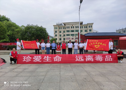 7月5日,高飞老师带领九游体育官方网站三下乡社会实践服务队与周溪镇党委委员段龙智副镇长、周溪镇派出所民警冯唐坤带领的志愿者一同在周溪镇政府门前广场及附近社区开展防范网络诈骗和禁毒知识宣传。