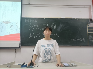在同学们齐唱国歌后,本次活动正式开始。团支书们向同学们讲述了“九一八”事变发生的历史背景和影响,组织同学们观看了纪录片《纪念九一八》,带领同学们再次回忆那段屈辱的历史,并引导同学们自立自强,为中华民族的伟大复兴不懈努力。同学们纷纷表示:“我们今天的幸福生活来之不易,要牢记历史,勿忘国耻,要以青年之名,主动扛起时代担当。”